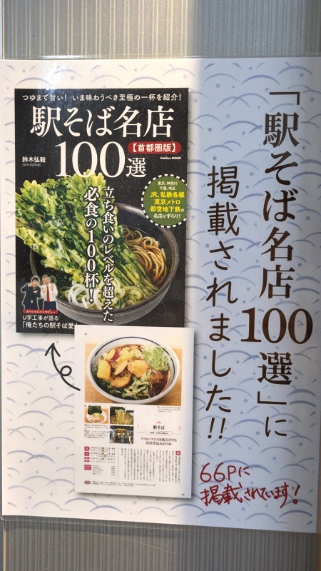 店頭には「駅そば名店100選(首都圏版)」に選ばれたとの掲示も。