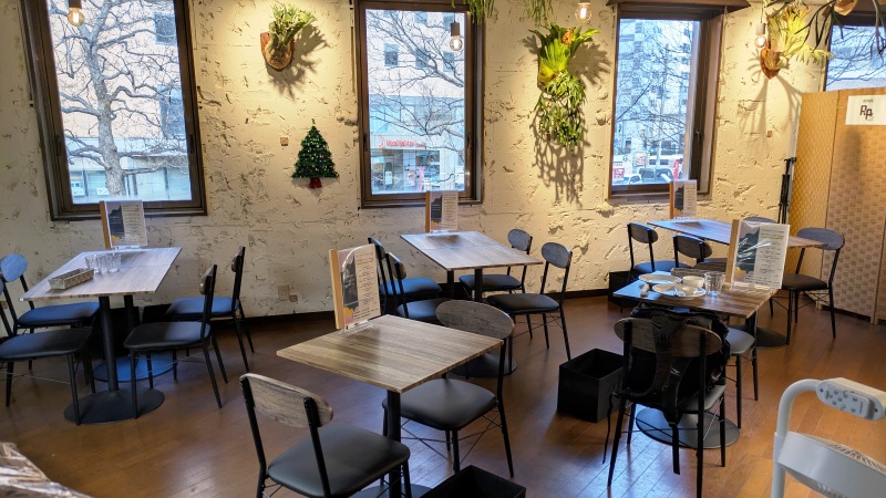 窓側が広い窓で明かりが入ってくるのと、観葉植物(?)を販売しているようで、それらが置いてあるので雰囲気は良い感じに仕上がっていましたよ。