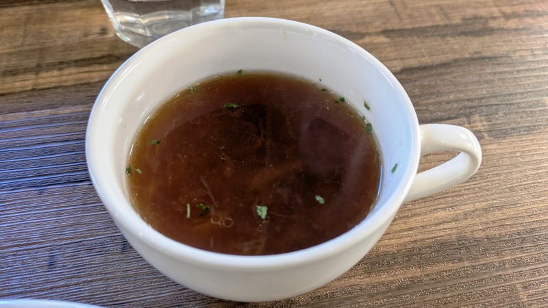 スープはオニオンスープ、香りも味もしっかりでした。