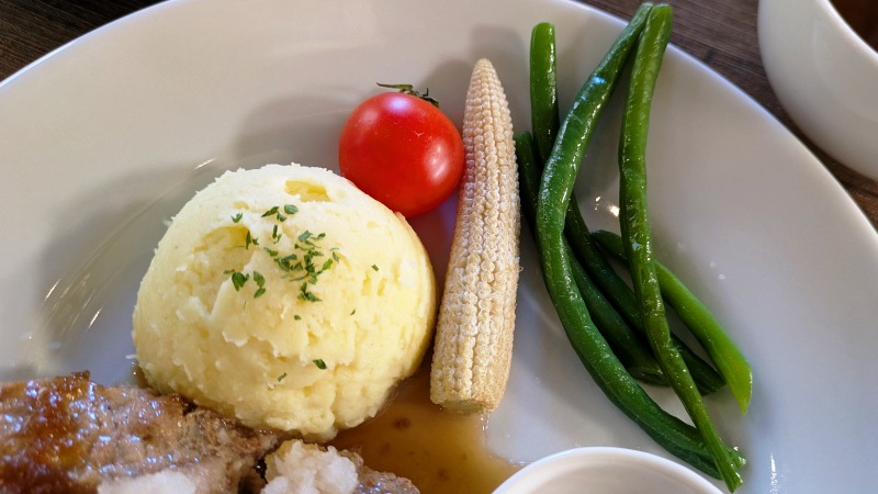 ハンバーグも添えられているお野菜も、ボリュームあります。