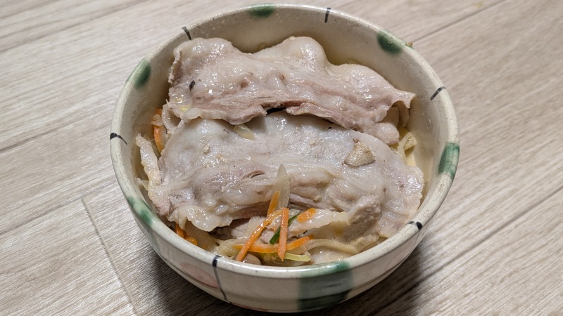 なんかプラスチック容器だと味気ないので、丼に移してみました。うん、なんかそれっぽくなったゾ。