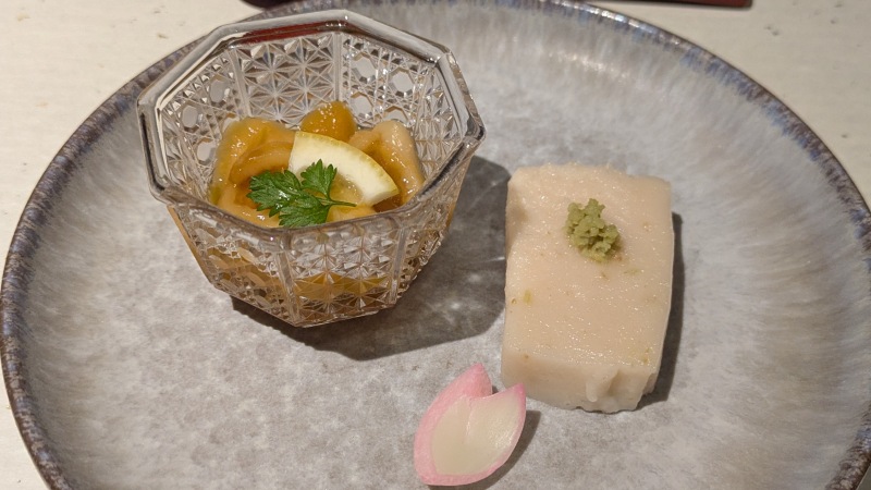 ホヤのお刺身と山芋の練り物。とーってもお上品。