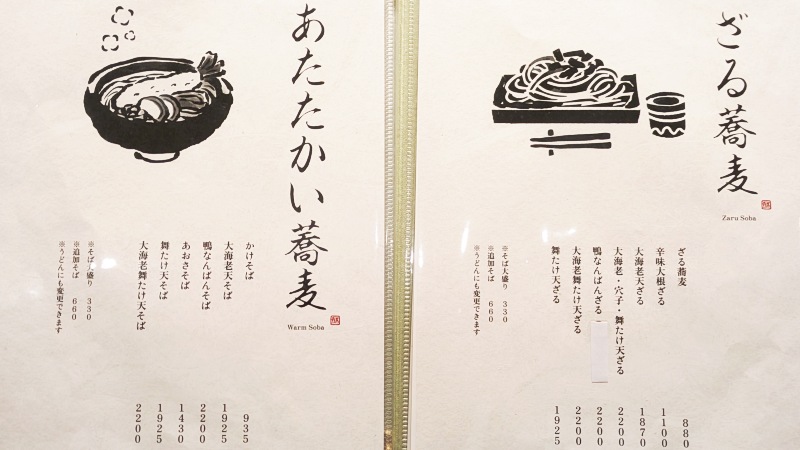 メニューを見てみますと、ざるそばが880円、かけそばが935円(いずれも税込み)と、そこそこしっかりしたお値段。